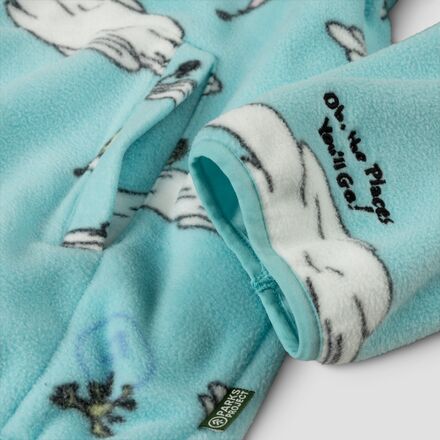 "Brighten your outdoor wardrobe with the Dr. Seuss Clouds & Balloons Trail Fleece. Made from 100% recycled polyester, this high-pile fleece offers sustainable warmth for brisk hikes or casual outings. With playful graphics inspired by the imaginative world of Dr. Seuss, it’s as much about fun as it is about function. A perfect balance of style, comfort, and sustainability